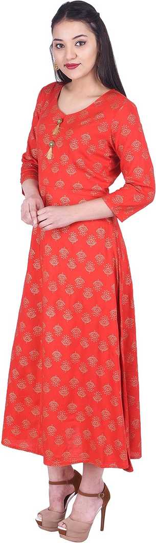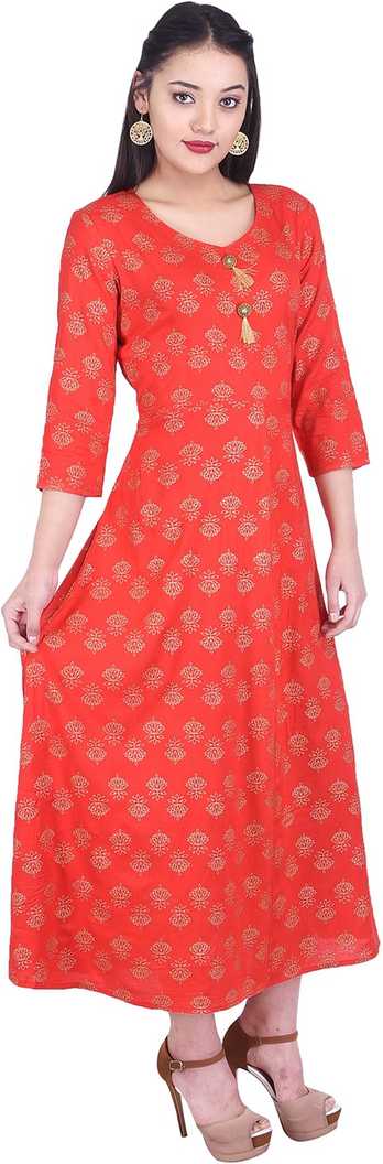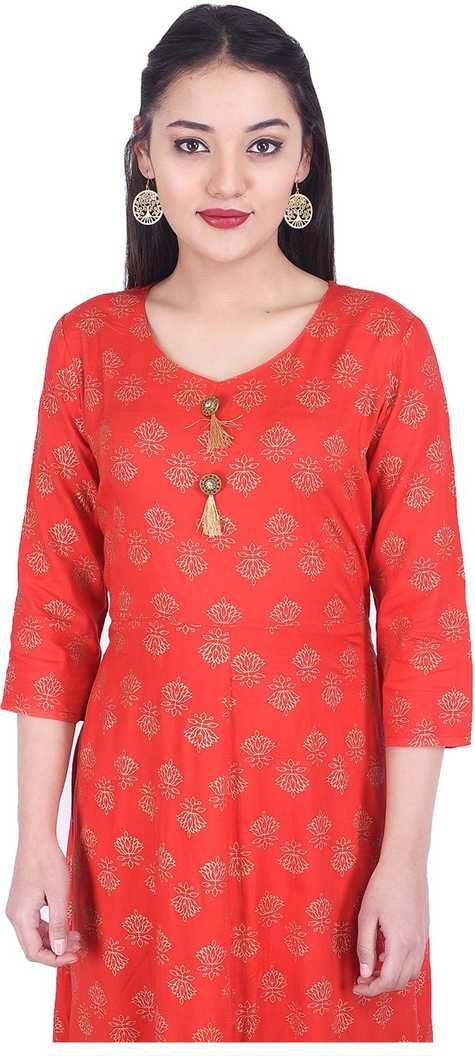 Fabric:-Rayon|Color:-Red|Pattern:-Printed|Type:-Flared |