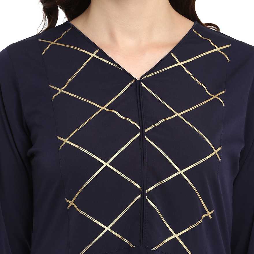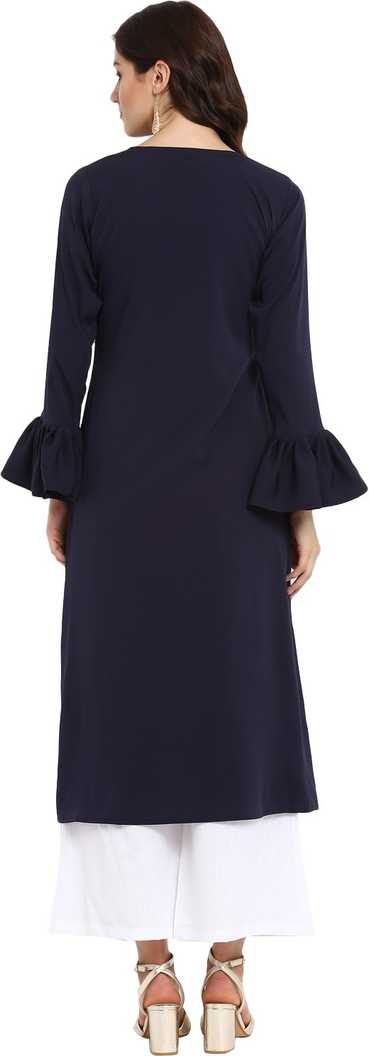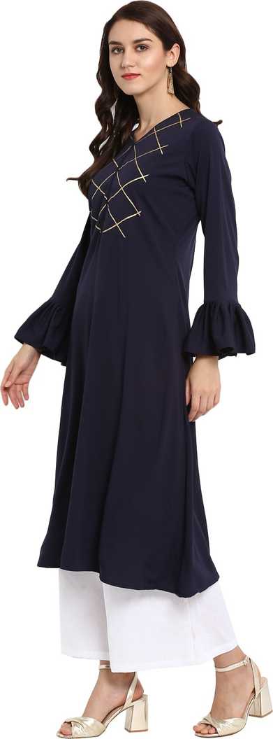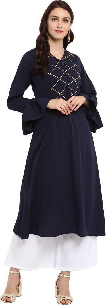 Stand Collar with Full Sleeve Flared Crepe Kurta |