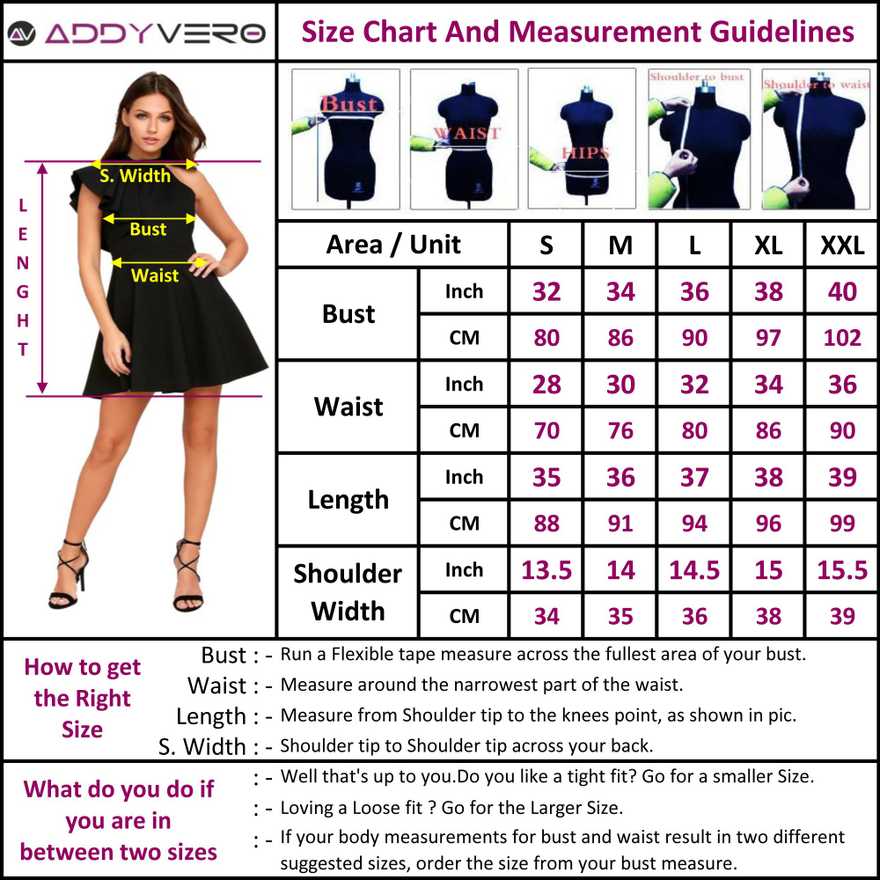 Fabric Detail : 96% Cotton Blend & 4% Lycra, Fabric has some stretch, Fit - This garment fits true to size, Length - Mid-thigh, Size Small is 36'' long from high point of shoulder to hem, Bust - Works best for A to C cup sizes - consider sizing up for fuller bust., Waist - Stretchy fabric allows custom fit, Hip - fuller skirt allows room for hips, Undergarments : May be worn with any standard bra., Model is wearing Small Size and having Height - 5'9", Bust - 32", Wais t: 28", Hip : 34" |