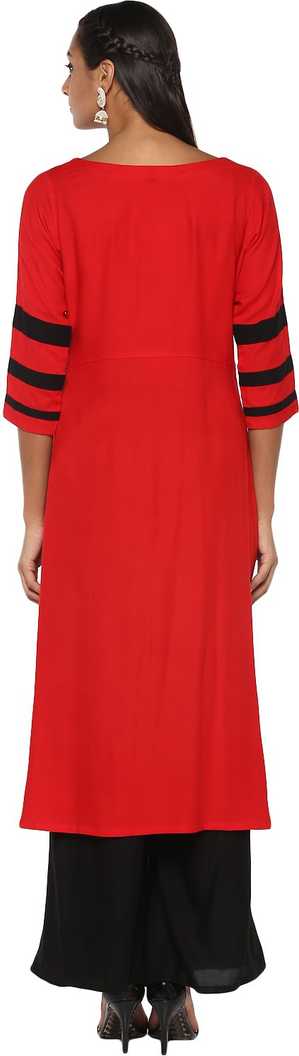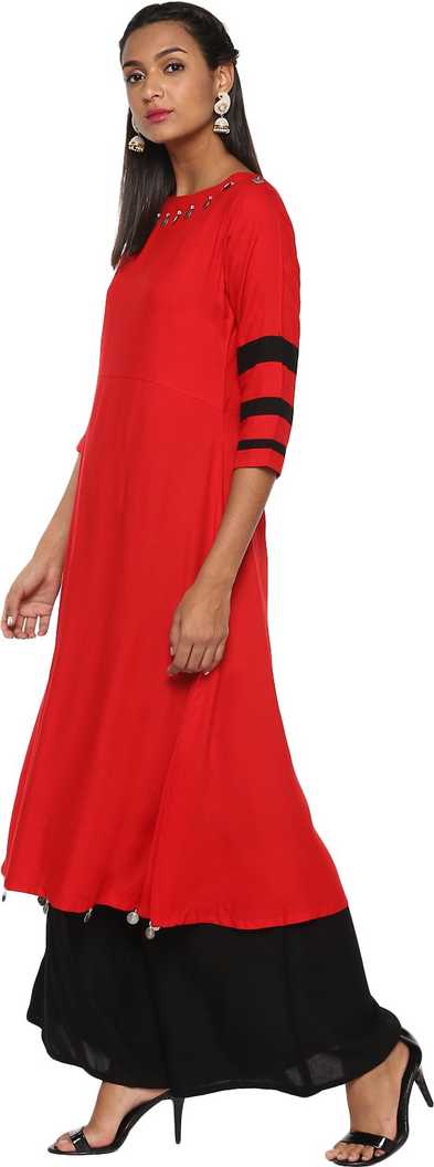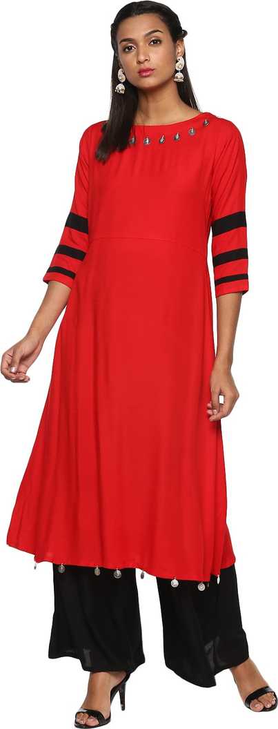 Boat Neck With 3/4Th Sleeves Flared Rayon Kurta |