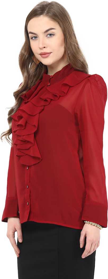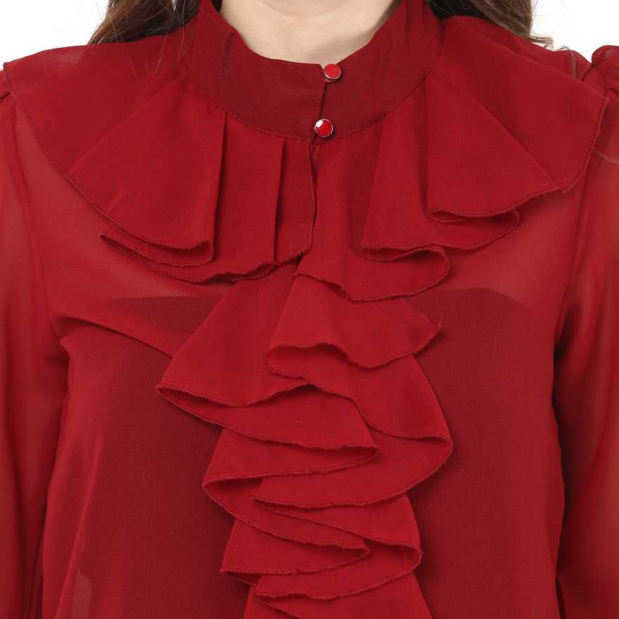Button Down Placket, Frills at Neck |