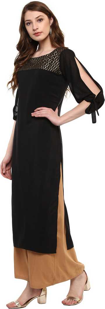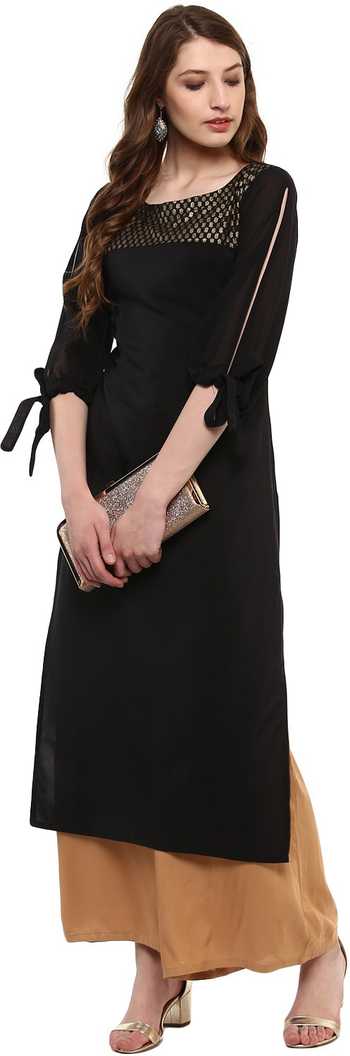 Boat Neck 3/4th Sleeve Solid Straight Kurta |