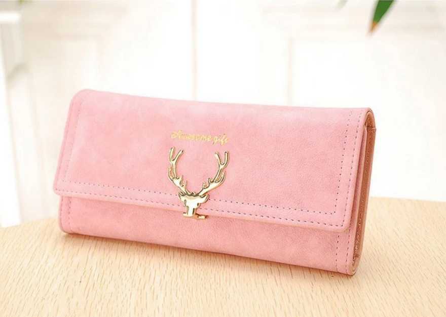 Model Name: Women Suede Leather Long Wallet Card Organizer Clutch Bag with Deer Pattern LockÃ?Â
