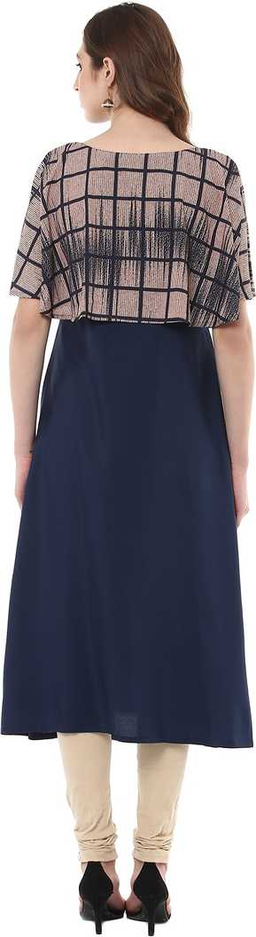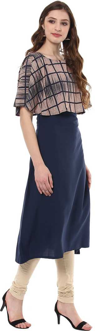 Other Details: Boat Neck Sleeveless Solid Flared Kurta With Digital Printed Attached Cape