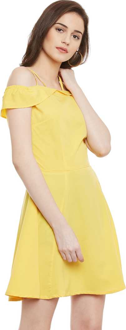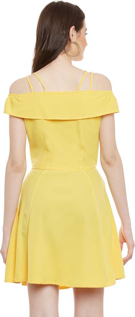 Other Details: Primrose yellow fit & Flare dress with cold shoulders