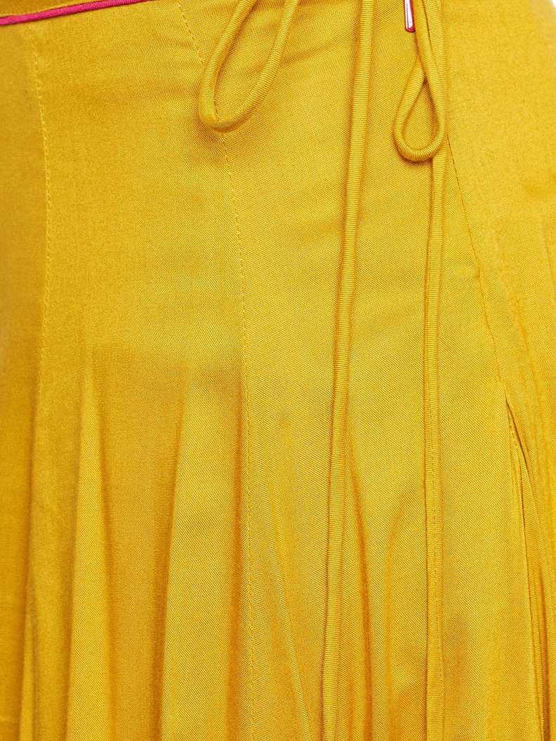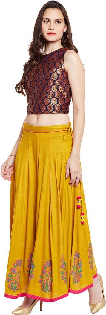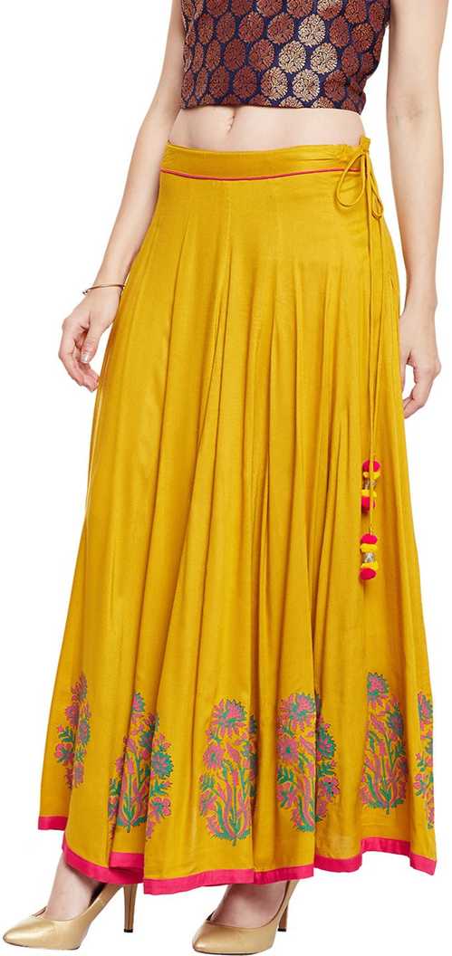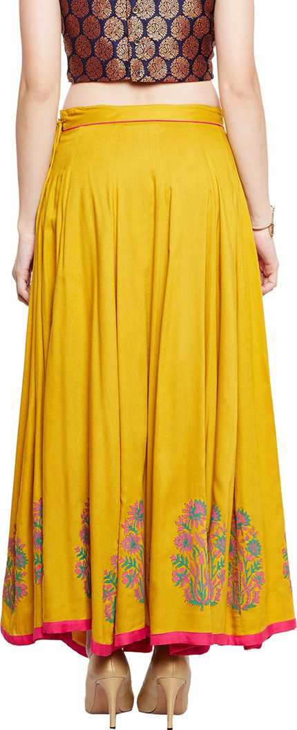 Bitterlime Women Block Print Kalidar Mustard Skirt |