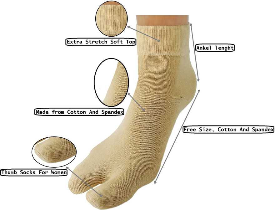 Knitting Technique makes it Soft & Skin Friendly, Crafted from Cotton & Spandex, Thin yet warm & Light Weight, Maintain moisture and temperature control together, Keep Feet odour free, Thumb Socks, Free Size |