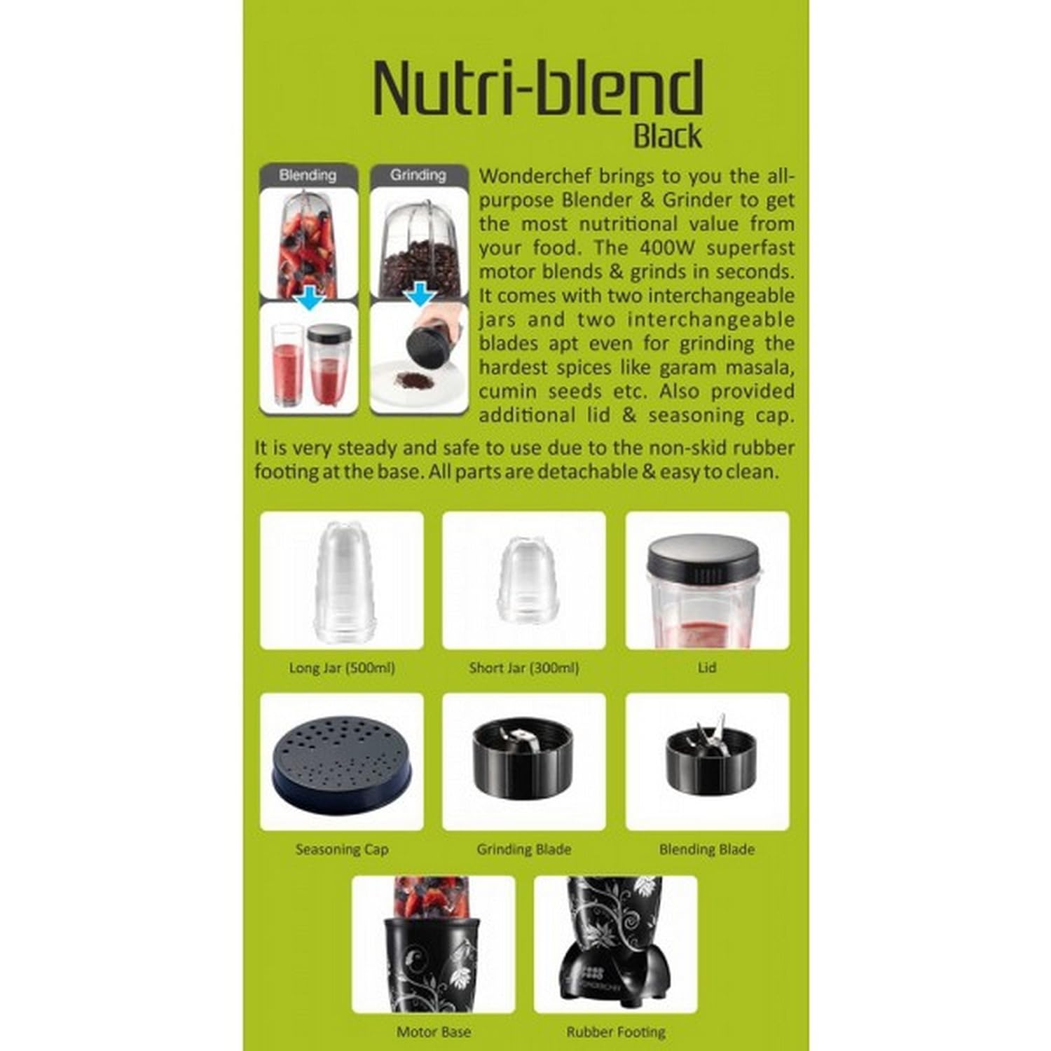 Wonderchef Nutri-Blend 63152293 400-Watt Mixer Grinder with 3 Jars (Black)