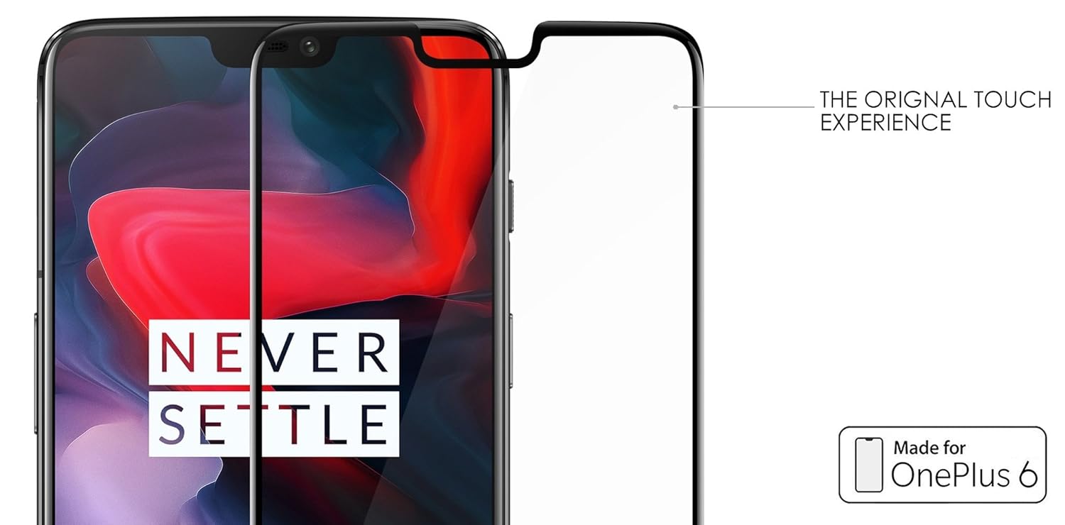 Full body asahi tempered glass: specially designed full screen protector for oneplus 6. Edge to edge full cover, asahi glass is precisely cut and 2.5d tapered. Hd screen ensures perfect match with your screen with zero impact on visual display or touch response. Designed to contour elegantly with the oneplus 6 front face, our precisely-engineered 3d tempered glass screen protector provides a crisp viewing experience and optimal protection from edge to edge