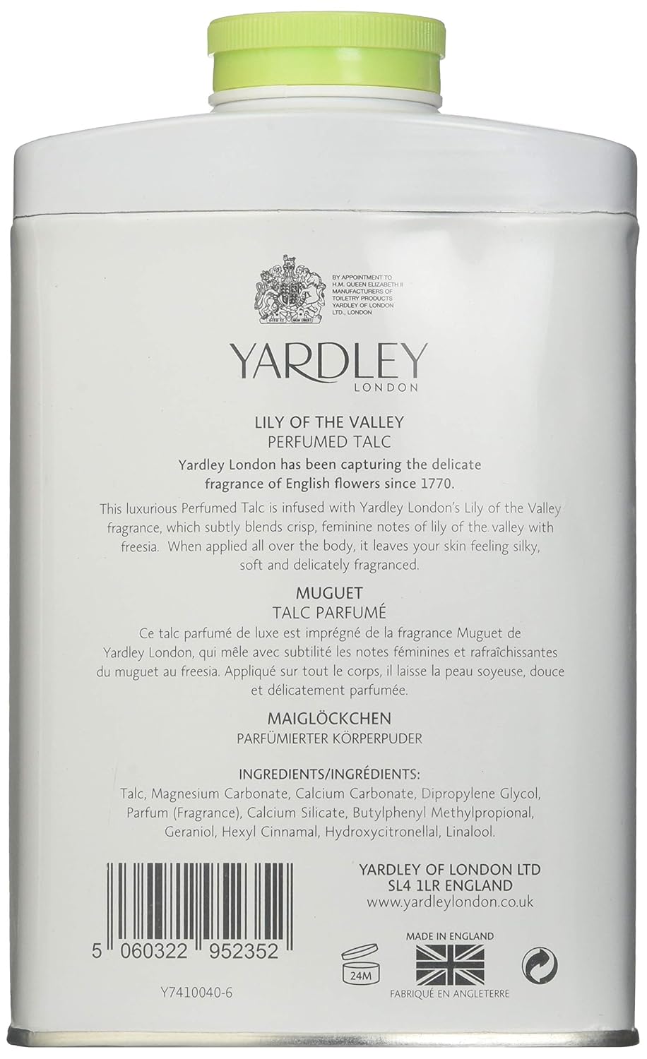 Yardley London Lily of the Valley Perfumed Talc Powder 7oz 200g.