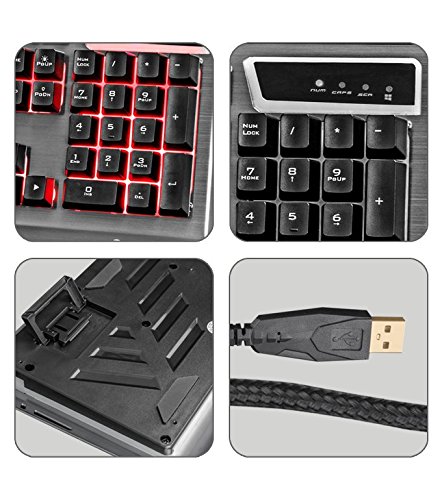 The transformer is a combination of a is a USB standard keyboard with a mouse. The keyboard has a total of 104 keys. It has multi coloured LEDs (4 modes with 3 light modes with an integrated media control . It has a 2 step stand design and comes with laser keycaps and an aluminium body. It has braided cable and a high quality USB connector. The mouse comes with 7 breathing LED colors with compact and ergonomics design with a solid structure and extra buttons for DPI/ forward/backward. It comes with a braided cable and high quality USB connector. |