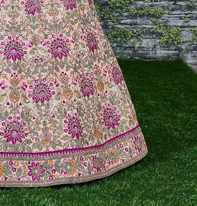 Zeel Clothing Womens Silk Semi stitched Lehenga Choli (7035_Peach_Free Size)