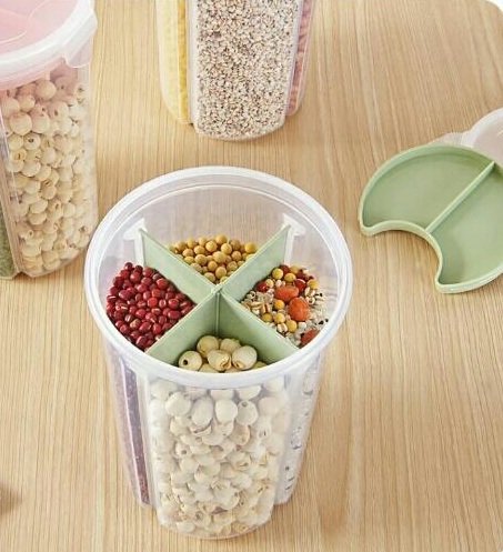 Zollyss Transparent Plastic Lock Food Storage Dispenser Airtight Container Jar with 4 Sections for Cereals, Snacks, Pulses